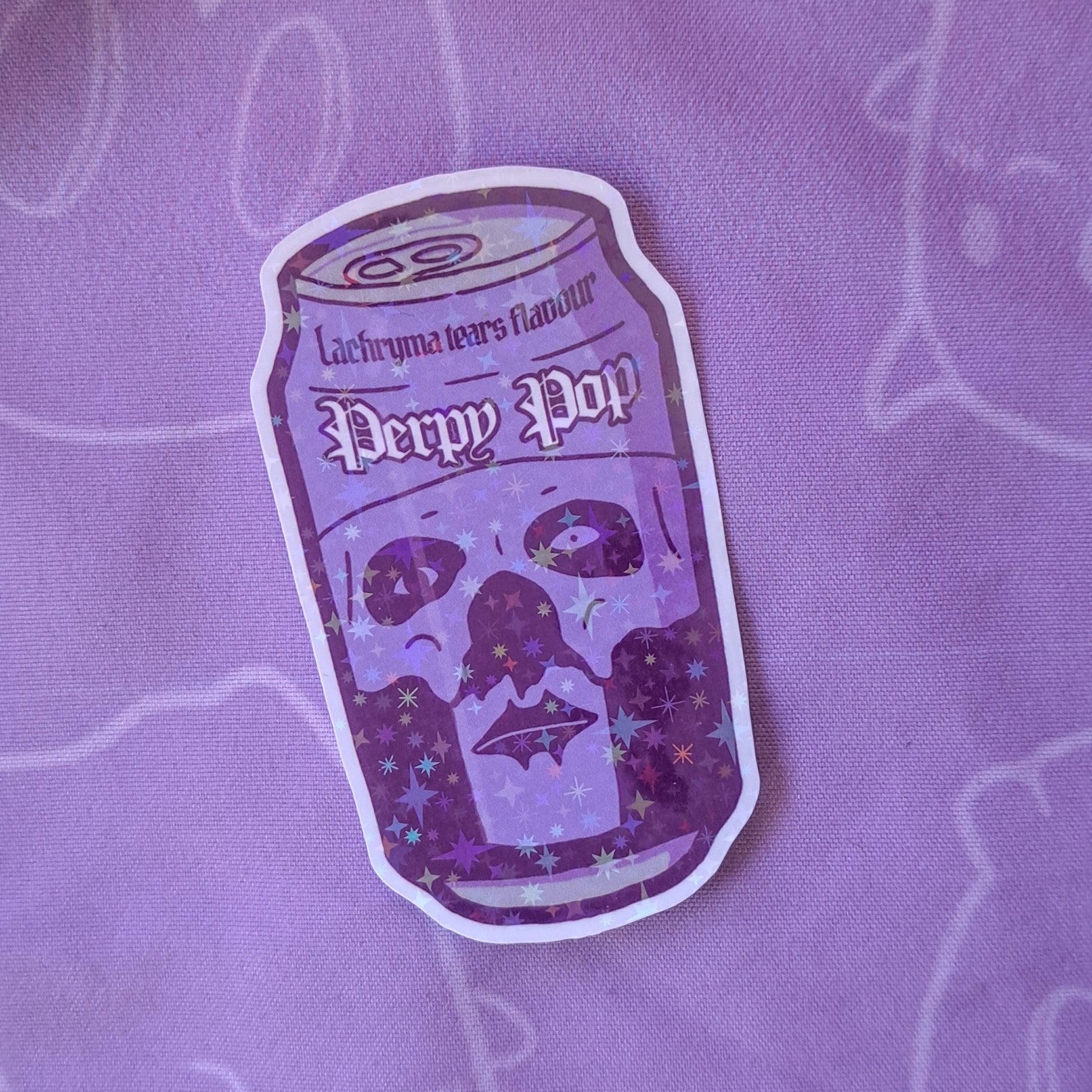 3 x 2 inch vinyl sticker of Papa Emeritus V Perpetua as Soda. Each sticker has a random holographic overlay (stars or glass)!