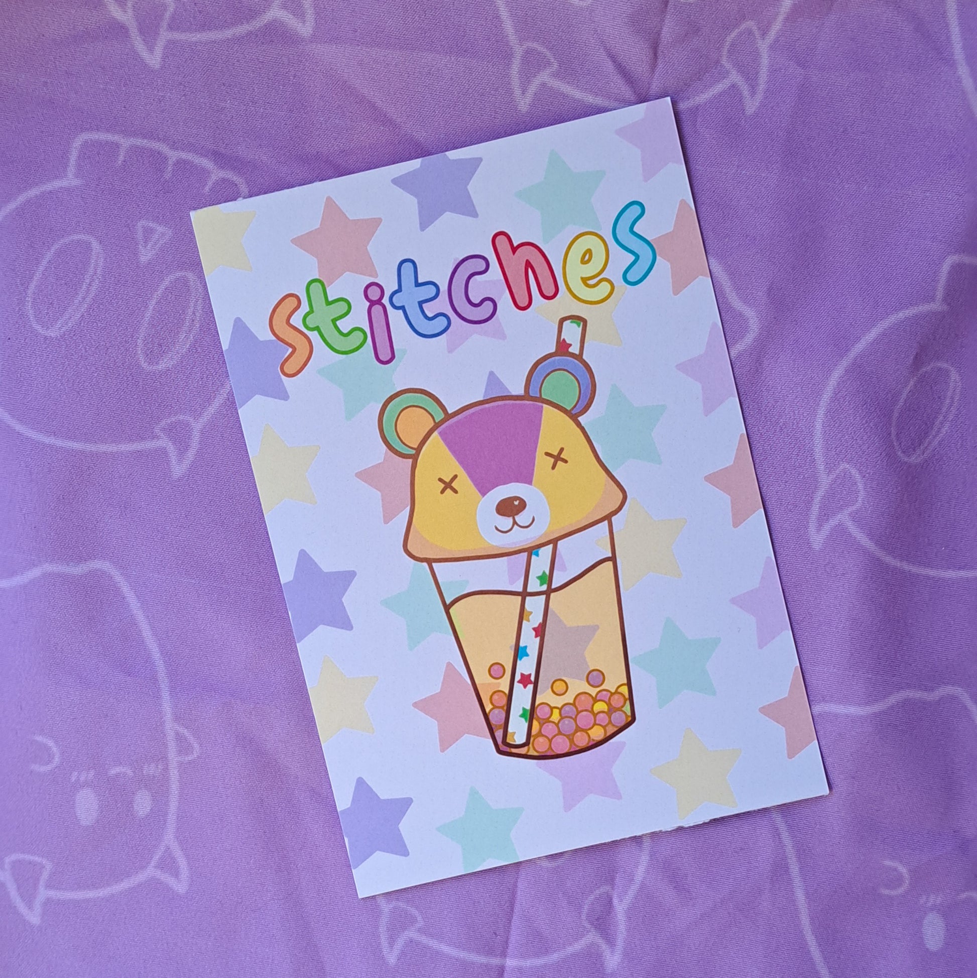 A6 or A5 art print featuring Stitches as a cup of Boba. Printed on 300gsm Matte card.